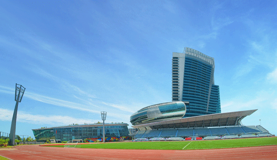 體育館占地面積6600平方米,分為四層。觀眾座席2300座,分為三面看臺,比賽場地1650平方米。熱身訓練館占地面積4400平方米,熱身訓練場地 2400平方米。比賽館更衣室2間、貴賓室2間。熱身訓練館更衣室2間。另外,還有若干功能房,包括新聞中心、裁判工作室、尿檢室和醫療室。