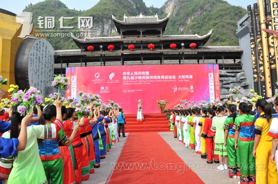 9月7日上午,銅仁市民族風情園彩旗飄揚,載歌載舞,熱鬧歡騰,一派喜慶。第九屆全國少數民族傳統體育運動會銅仁站火炬傳遞在這里隆重舉行。