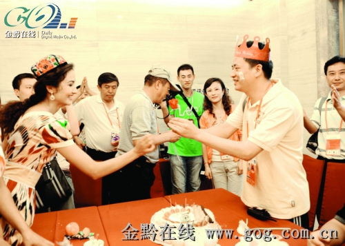 昨日,貴陽市云巖公安分局駐西湖花園酒店安保指揮室民警與新疆代表團一起歡度中秋,共賞明月。當天也是該酒店安保指揮室指揮長胡康43歲的生日,新疆代表團的維吾爾族姑娘為他獻上了一朵火紅的玫瑰。