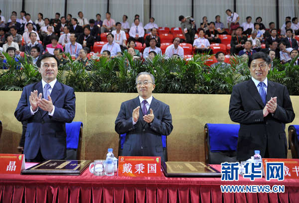 9月18日,第九屆全國少數(shù)民族傳統(tǒng)體育運動會在貴陽閉幕。國務(wù)委員戴秉國(中)出席閉幕式并宣布第九屆全國少數(shù)民族傳統(tǒng)體育運動會閉幕。新華社記者王鵬攝