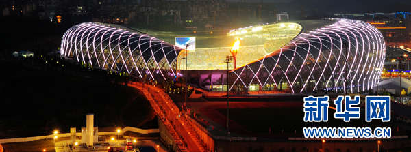9月18日,第九屆全國少數(shù)民族傳統(tǒng)體育運動會閉幕式舉辦場館——貴陽奧體中心外景格外迷人。當(dāng)日,第九屆全國少數(shù)民族傳統(tǒng)體育運動會在貴州省貴陽市落下帷幕。新華社記者 劉續(xù) 攝