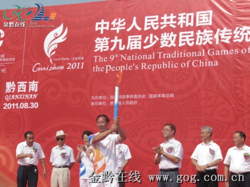 第九屆全國少數民族傳統體育運動會黔西南火炬傳遞現場。