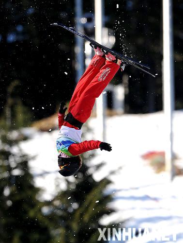2月20日,中國選手李妮娜在比賽中。當日,在溫哥華冬奧會自由式滑雪女子空中技巧資格賽中,李妮娜獲得192.10分,暫列第二。新華社記者 陳凱 攝