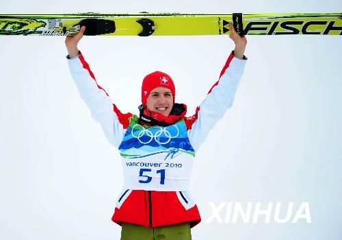 2月13日,瑞士選手西蒙·阿曼慶祝奪冠。當(dāng)日,在加拿大惠斯勒進(jìn)行的冬奧會(huì)男子跳臺(tái)滑雪比賽中,西蒙·阿曼兩跳拿到276.5分,獲得跳臺(tái)滑雪標(biāo)準(zhǔn)臺(tái)K90男子個(gè)人比賽金牌,這也是本屆冬奧會(huì)的首枚金牌。