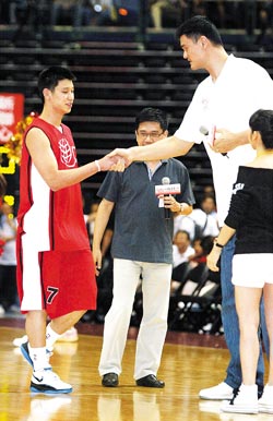 姚明特別介紹NBA球員林書豪,也讓林書豪成為第一位被介紹出場的球員,可見姚明對林書豪的看重。