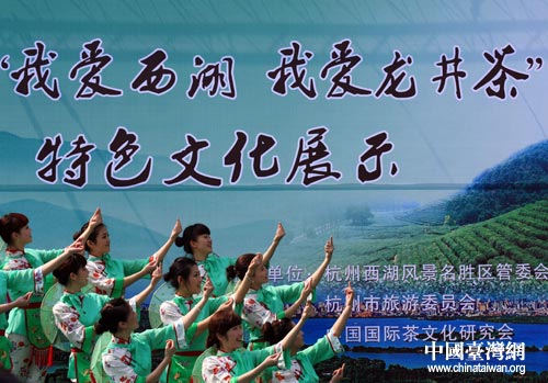 30日上午,2009年“我愛西湖,我愛龍井茶”西湖龍井茶特色展示活動(dòng)在杭州市涌金廣場隆重舉行。圖為活動(dòng)開始前的精彩文藝表演。(中國臺(tái)灣網(wǎng) 田云鵬 攝)