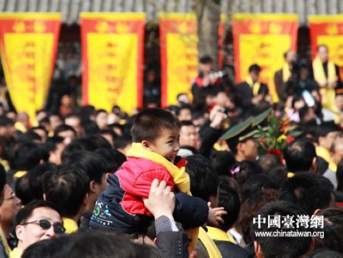 辛卯年黃帝故里拜祖大典開始前。扶老攜幼,觀者云集。(中國(guó)臺(tái)灣網(wǎng) 馬迪 攝)