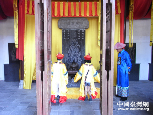 跪拜至圣師孔子是必不可少的程序 (中國臺灣網(wǎng) 蕪?fù)?攝)
