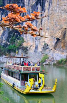 花山崖壁畫畫幅一般繪在離地面5一10米高的懸崖峭壁上,一些高的離地面達120米,決大多數畫在臨江轉彎處的懸崖峭壁上,非常宏偉壯觀。 壁畫,壯語叫做“芭萊”,漢語就是“花山”的意思,人們把左江流域的崖壁畫統稱為“花山壁畫”。其中最大的畫幅位于寧明縣馱龍鄉的明江岸邊,距縣城25公里。該巨畫繪在臨江陡峭的懸崖上,畫面高40米,寬 221米。畫幅里有各種圖像1900多個,其中大小人像1300多個,最大的人像有3米,最小的約30厘米,是用赭紅色顏料涂畫出來的速寫圖案式巖畫。 現存的1800多個畫像包括了人物、動物和器物。人物只畫頭、頸、軀體和四肢,不見五官及其它細部,分正身及側身兩類。 整個畫象,筆力原始粗狂,雖經世世代代的風雨,依然清晰可見。這樣規模宏大、內容豐富的壁畫,不僅在我國是少有的,而且在世界上也是罕見的,難怪人們說花山崖壁畫這壯族古代藝術璀璨的明珠可與敦煌壁畫媲美。 這些壁畫所表現的內容和主題是什么?它又是怎樣畫成的?那赭紅色顏料久經風霜雨露長留至今,它是一種什么顏料?花山崖壁畫成畫年代尚未定論,但據歷史學家考察,至少在2000年以前;但在花山崖壁畫群附近的(扶綏縣城對岸)貝丘遺址所出土的新石器時代遺物,是否與花山壁畫有直接聯系?是壁畫作者留下的還是他們的先祖?這許許多多的問號都成了千古之謎。