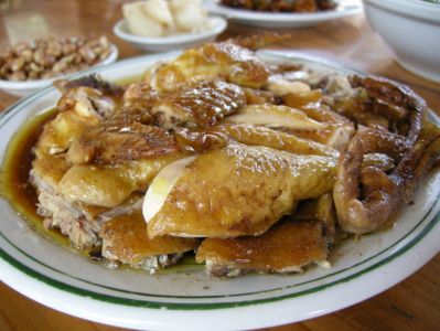 現在我要跟大家分享一種風味美食——“泥窯雞”。座落于北海大道與湖南路交界(即金葵市場紅路燈處)有間名叫“廣東豪苑雞飯店”那里的泥窯雞選定獨特配方。以高溫明火烘烤獨特土壤焗出純正泥窯雞。其味濃郁芳香,唇齒留香。經常食用可溫補 強身。