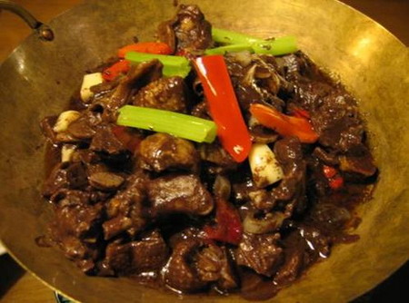 大家可能已經好奇了,這醋血鴨究竟是如何制作的?廣西全州的醋血鴨用料講究,一定要選用嫩鴨當作原料。什么是嫩鴨?嫩鴨就是已經長成但是不肥不瘦的年輕鴨子(太嫩則無肉,太老則肉粗)。殺鴨留血,為了防止鴨血凝固,在新鮮的鴨血中加入少許水淀粉、米醋,攪拌均勻,使得鴨血不凝固。把鍋燒熱,加入適量的油,將切好的鴨肉放入鍋中翻炒、燜至七成熟,在燜的過程中,加入適量的水,再放入嫩姜(全州醋血鴨里還會放入少量的苦瓜)等輔料,直至入味,待鴨皮有些脆的時候將調好的鴨血倒入鍋中,快速翻炒5分鐘左右,即可盛出。(喜愛吃辣的朋友還可以在燜制過程中加入少許辣椒)一道風味獨特的醋血鴨就做成了。