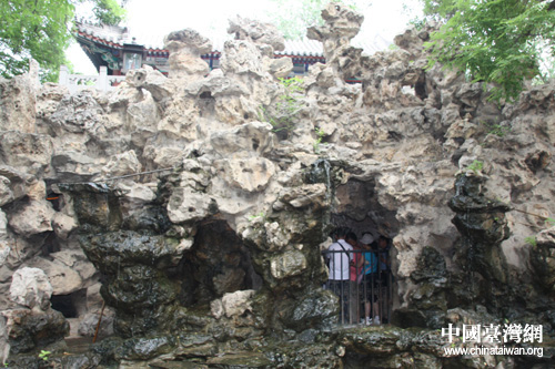 恭王府內(nèi)著名景點(diǎn)——滴翠巖,康熙御筆題寫的“福”字藏于巖內(nèi)洞中。(中國臺灣網(wǎng) 肖燕 攝)