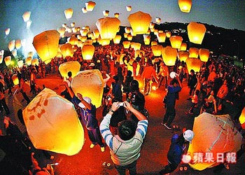 祈愿靠天燈。昨晚超過6萬民眾涌入臺北縣平溪鄉放天燈,看著天燈冉冉升空,眾人不時發出驚嘆聲。昨晚共施放12波2600個天燈,多數民眾心愿都是期待賺錢或身體健康。來源:臺灣《蘋果日報》