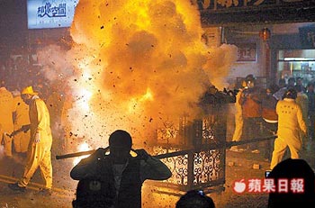 夜弄土地公。臺北市內湖地區元宵節民俗活動夜弄土地公昨晚登場,有百年歷史的枧頭店福德祠土地公盛大出巡,商家和民眾將鞭炮圈在神轎上狂炸土地公,深信炸愈多、財運愈旺。來源:臺灣《蘋果日報》