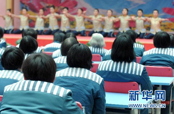 2月17日,在參加“月圓人圓”親情幫教會(huì)上,服刑人員們?cè)谟^看情景舞蹈《在媽媽懷抱里》。當(dāng)日,是農(nóng)歷正月十五元宵節(jié),在這個(gè)萬家團(tuán)聚的日子里,大墻之內(nèi)也正演繹著一種別樣的悲歡離合——河南省鄭州女子監(jiān)獄的29名服刑人員,和毗鄰的豫中監(jiān)獄有著親屬關(guān)系的服刑人員,相聚在兩座監(jiān)獄共同舉辦的 “月圓人圓”親情幫教會(huì)上,共度元宵佳節(jié)。 新華社記者王頌攝