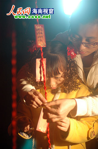 在海瑞故居的兩棵榕樹下,市民許愿祈;顒痈菬狒[,市民紛紛把新年愿望寫在卡片上,系上紅繩綁在榕樹下,祈求新的一年平安吉祥、順順利利。此外,當(dāng)晚的紅城湖廟會也人潮涌動、熱鬧非凡,燈展、游園、卡拉OK、木偶戲、傳統(tǒng)小吃、瓊劇票友演唱會等讓市民們興致濃濃。