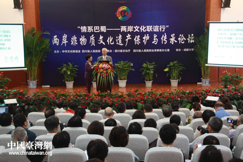 兩岸非物質(zhì)文化遺產(chǎn)保護(hù)與傳承論壇是“情系巴蜀 兩岸文化聯(lián)誼行”的重要活動(dòng)之一,由前海基會(huì)副董事長(zhǎng)焦仁和率領(lǐng)的95名臺(tái)灣文化、教育界人士出席論壇,與四川學(xué)者共議非遺保護(hù)與傳承。(記者 張瑞宸 趙輝)