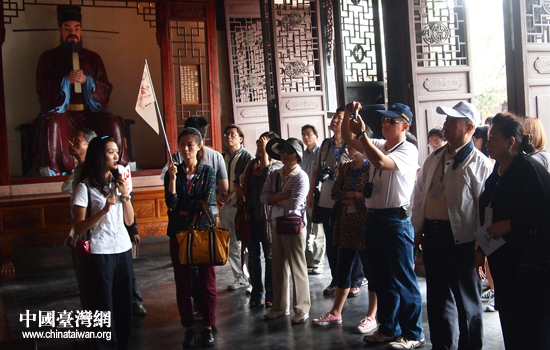 13日,參加情系巴蜀—兩岸文化聯誼行活動的臺灣嘉賓參觀眉山“三蘇祠”。(中國臺灣網 張瑞宸 攝)