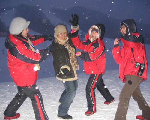 在哈爾濱吉華滑雪場,記者意外發現該滑雪場總經理(左一)來自臺灣,臺灣媒體的記者們大有“他鄉遇親人”,大家一擁而上問他在哈爾濱的生活感受如何,據經理介紹他負責吉華滑雪場已有一年多時間,生活的很習慣。他說要把東北人的熱情和臺灣優秀的服務意識結合在一起,建成東北顧客滿意度最高的滑雪場。