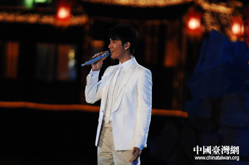 中國臺灣網(wǎng)9月26日承德消息 “山莊月·中華情”2007中秋晚會昨晚在承德避暑山莊舉行,費(fèi)玉清、RAIN、陶喆、陳坤、張震岳、林俊杰、張娜拉、譚晶等來自兩岸三地和海外的明星登臺獻(xiàn)藝。明月樓閣映照在五光十色的煙火中,兩岸同胞和全球華人通過晚會同賞山莊月,共敘中秋情。