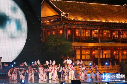 備受矚目的“山莊月·中華情”2007中秋晚會(huì)將于今晚在承德避暑山莊舉行。24日晚,劇組進(jìn)行了最后彩排。圖為歌舞樓閣相得益彰。(中國(guó)臺(tái)灣發(fā))
