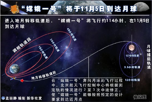 “嫦娥一號”將于11月5日到達月球 新華社發