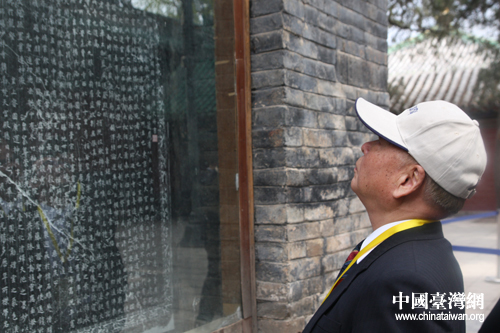 王文燮將軍參觀《唐太宗賜少林教碑》(中國臺灣網 趙輝 攝)