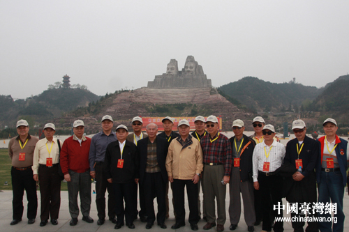 黃埔軍校同學會會長林上元(前排左二)與參訪團王文燮(前排左三)等老將軍在巨幅炎黃二帝雕像前合影留念(中國臺灣網 趙輝 攝)