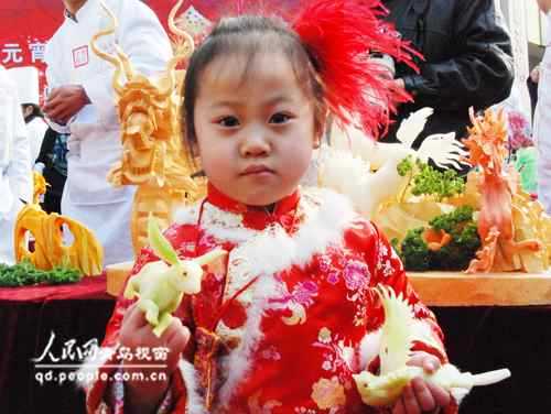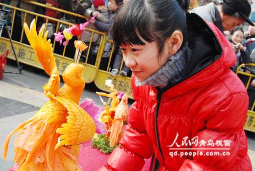 人民網青島2月11日電 (記者 楊紅) 今天,素有“青島新春第一節”之稱的2011青島(市北)蘿卜會·元宵山會拉開帷幕。清脆的蘿卜,唯妙唯肖的蘿卜雕刻、各地特色小吃、傳統高蹺、民間大鼓等吸引了數萬市民前來參會。