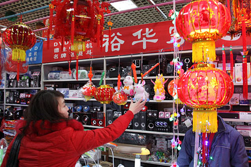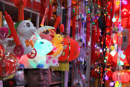 商家們緊抓商機,把兔子造型的花燈擺放在最顯眼的位置。