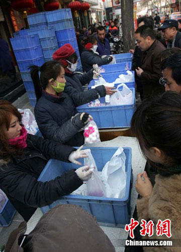 雖然速凍湯圓在各大超市隨處可見,但這家老字號(hào)的元宵依然生意興隆。“這是咱家鄉(xiāng)的特產(chǎn),又是老字號(hào),我每年都在這里買。”等了大半天的李女士終于可以滿載而歸。(完)
