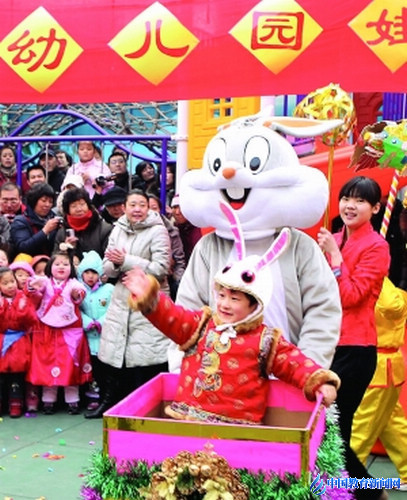 彩車巡游、跑旱船。元宵節(jié)當天,北京市東城區(qū)崇文回民幼兒園開展“我和兔年有個約會”主題活動,小朋友們用環(huán)保材料制作裝飾品,學習民俗知識。(本報記者 樊世剛 攝)