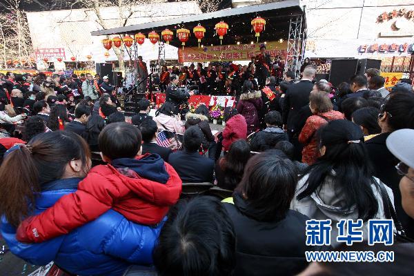 2月17日,演員在美國紐約曼哈頓華埠的元宵節慶;顒由媳硌。當天,美國福建公所在紐約曼哈頓華埠舉辦第七屆元宵節活動,讓海外華人在元宵佳節里也能感受到家鄉的溫暖。 新華社記者朱煒攝