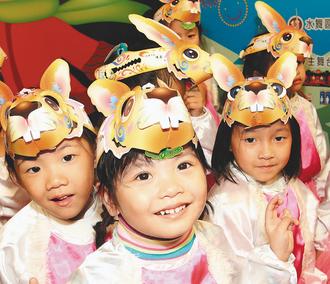 高雄燈會(huì)計(jì)算機(jī)仿真畫(huà)面,全臺(tái)首創(chuàng)環(huán)港煙火及高空煙火。記者會(huì)上小朋友展示在燈會(huì)期間免費(fèi)發(fā)送的“高耀兔”頭戴燈。圖片來(lái)源:《聯(lián)合報(bào)》