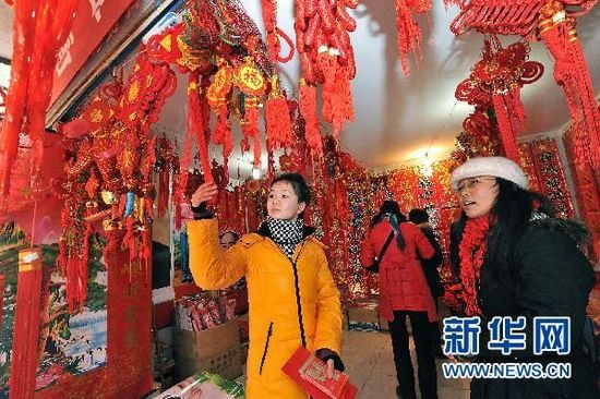 2月1日,顧客在選購節慶飾品。新華社記者 何俊昌 攝