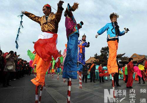 當日,呼和浩特2011年春節、元宵節文化廟會在擁有400多年歷史的大召無量寺文化廣場拉開帷幕。本屆文化廟會以“感受民俗文化、共度新春佳節”為主題,集中進行傳統民俗文化展演、花車巡游、書畫筆會、戲曲茶座和動漫展映等活動。 新華社記者張領攝