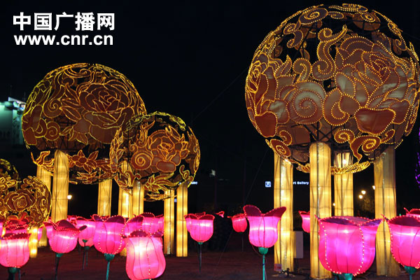 蘭州:兔年春節(jié)真艷麗 市民爭相賞花燈