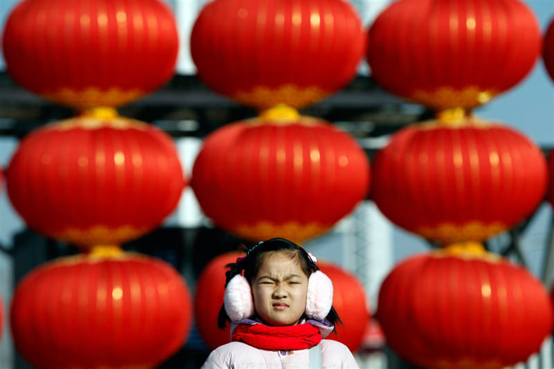 1月26日,北京,一個小姑娘站在節日氣氛濃郁的街頭。