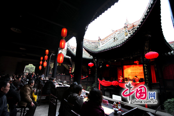 中國網2月17日訊 昨天,重慶2011慶元宵活動在湖廣會館舉行,張燈結彩的湖廣會館內舉行了猜燈謎、踢毽子比賽、學剪紙藝術、民間藝術表演等系列互動活動,吸引不少市民游覽參觀。主辦方還為現場觀眾送了可口的湯圓,不少老年人邊吃湯圓邊看戲,笑的何不攏嘴。 (阿舍 圖片報道)