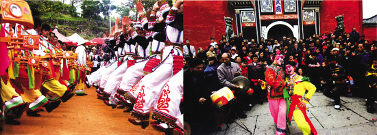 ■張家界的土家族人在“趕年”時會表演極具民族特色的高花燈舞蹈。