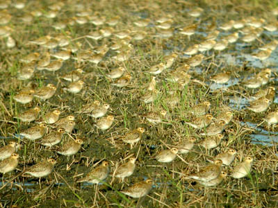 圖:聚集在一起的可愛金斑鸻,蕭木吉攝影,關(guān)渡自然公園提供