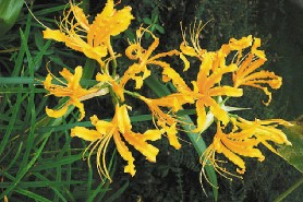 花農在臺北縣106號公路旁栽種的金花石蒜,現已進入美麗花期。