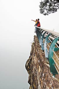 還記得"鐵達尼號"男女主人公在船頭背貼著胸談情說愛擁抱的那經典一幕嗎?這里正好是翻版,游人站在"船頭"學著電影情節(jié)摟摟抱抱時也別忘了欣賞變化萬千的云海風光。