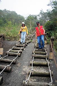 結束擁抱之旅后,腳程好的人可以繼續(xù)走,腳程差的人,可以準備下山。有一個用木塊、纜繩綁成可行走階梯的斜坡,坡度約45度,長約50公尺。