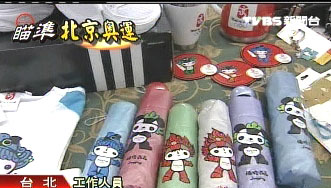 另外,以奧運福娃為主題的雨傘一把賣179元(新臺幣,下同),印有福娃圖案的兒童帽一頂189元,奧運授權(quán)背包一個要價399元,而印有北京奧運圖案的保溫杯一個賣799元,還有授權(quán)的T恤一件新臺幣448元。