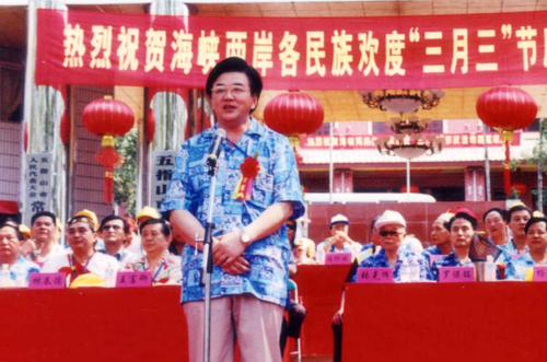 2005年3月,徐剛主任在海峽兩岸各民族歡度“三月三”節慶活動上致辭。(資料照片)