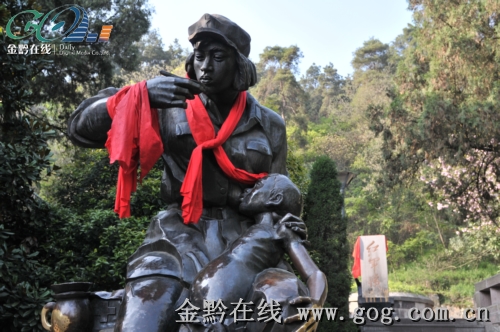 山上還有一座青石圓墳,墳前立著一塊石碑,上書“紅軍墳”三個大字,導游告訴我們,這里面埋葬的,是一位當年為遵義人民治病而慘遭反動派殺害的紅軍衛生員,他叫龍思泉,前來拜祭的人都親切的稱他為“紅軍菩薩”。