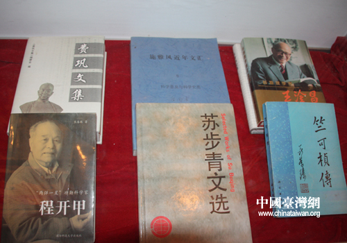 陳列館中竺可楨、蘇步青、程開甲等的書籍(中國臺灣網 李丹 攝)