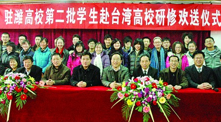 半年前,濰坊開創全省高等職業教育的先河,選派18名學生赴臺研修。1月14日,第二批駐濰高校赴臺研修學生歡送儀式舉行,42名學生將在2月中下旬赴臺學習。隨著駐濰高校與臺灣高校交流的深入,濰坊已成為全國職業教育對臺交流最活躍的地區。