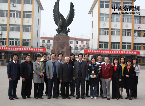 在濰坊一中的操場上合影留念(中國臺灣網 楊永青 攝)